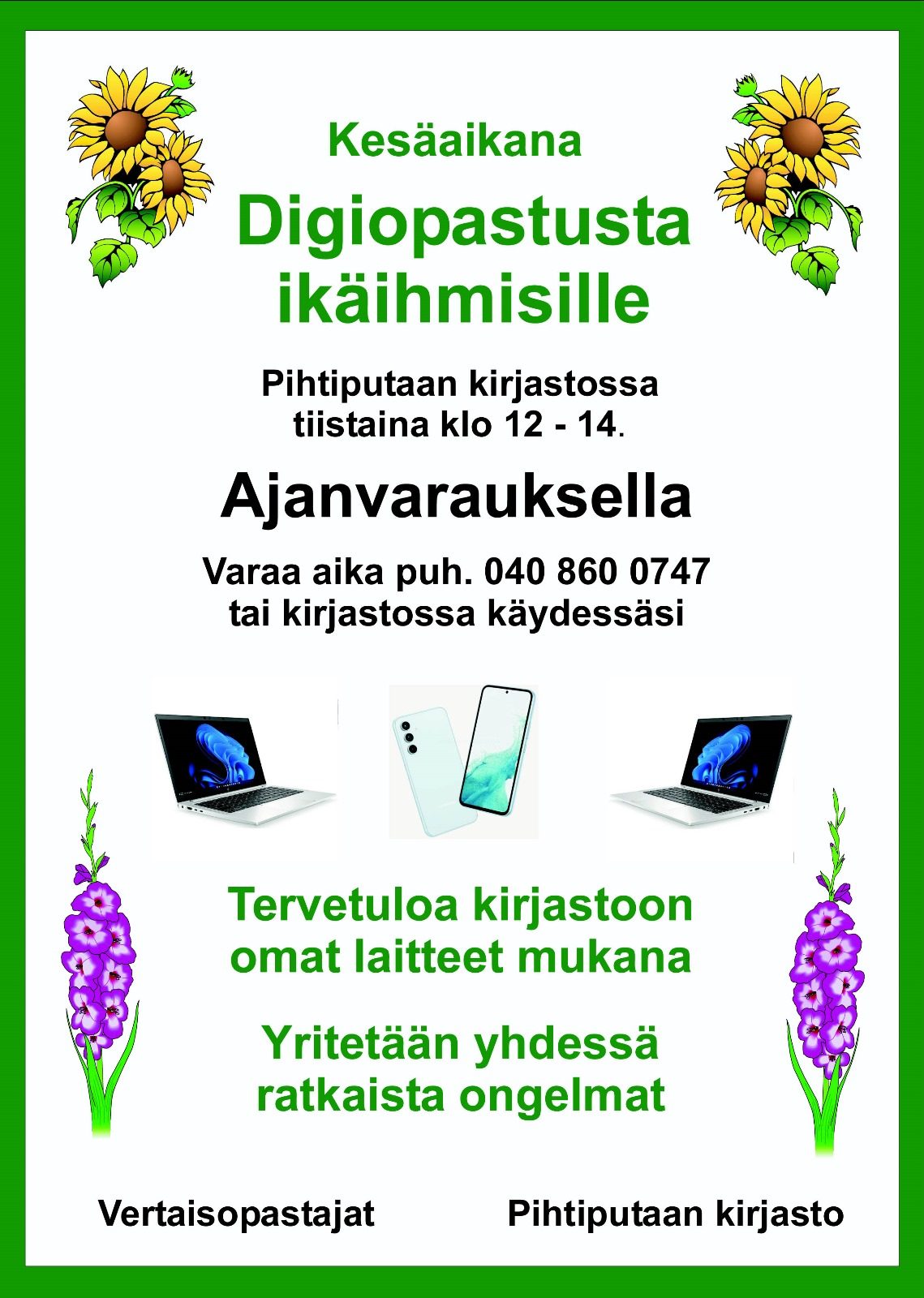 Digiopastusta ikäihmisille Pihtiputaan kirjastossa tiistaisin klo 12. – 14.00.