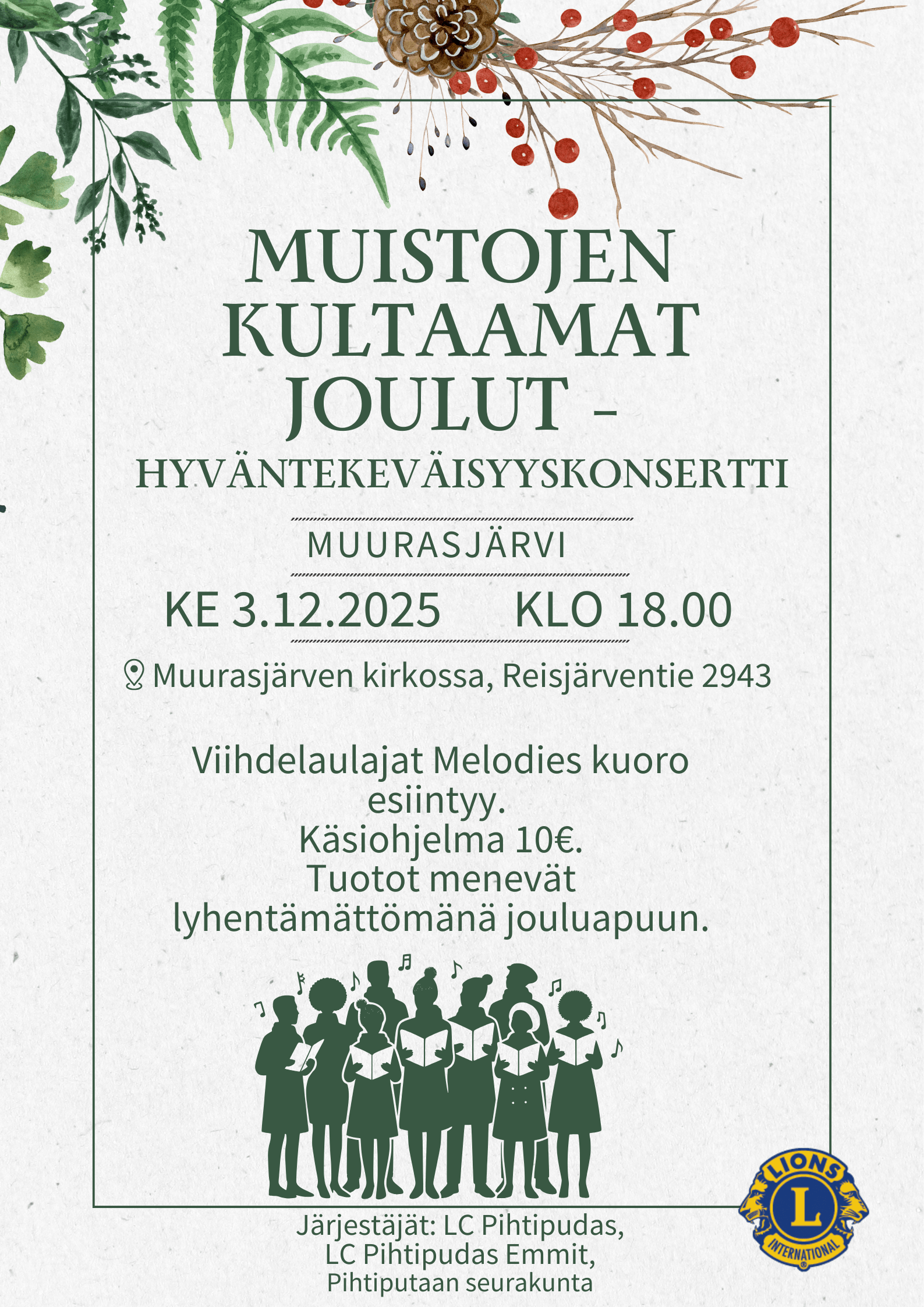 Muistojen kultaaman joulut- hyväntekeväisyyskonsertti muurasjärvellä