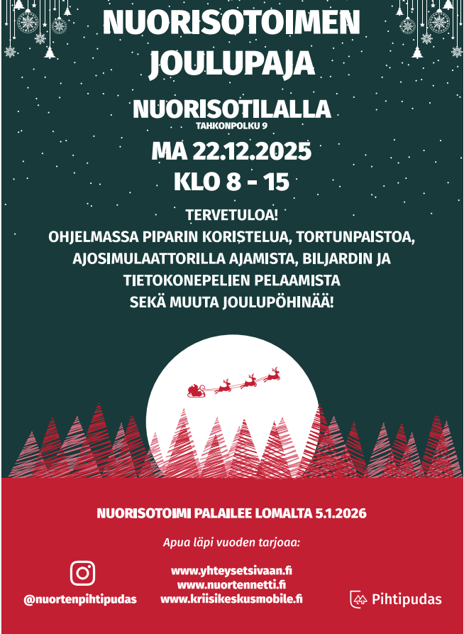 Ohjelmassa Piparin koristelua, torttujen paistamista, ajosimulaattorilla ajamista, biljardia, pelihuoneessa pelaamista, sekä muuta joulupöhinää.